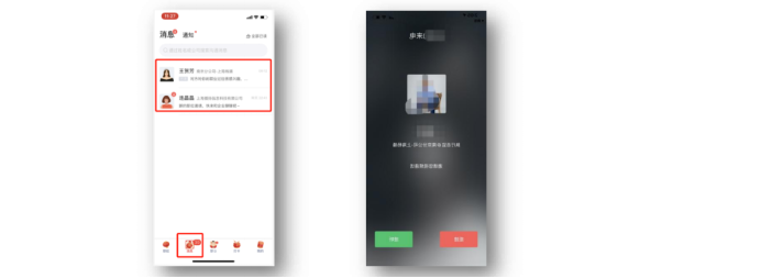 l 收到智联招聘APP【消息提醒】,打开智联招聘APP在【消息】板块进行文字回复/接听视频弹窗
